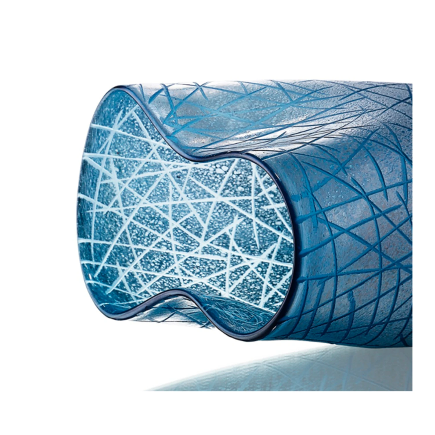 11”H X 9” BLUE GLASS CRISS CROSS VASE