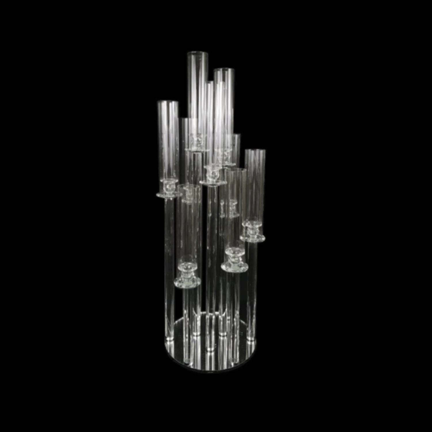 35”H X 12” 9 HEAD CRYSTAL CLUSTER CANDELABRA