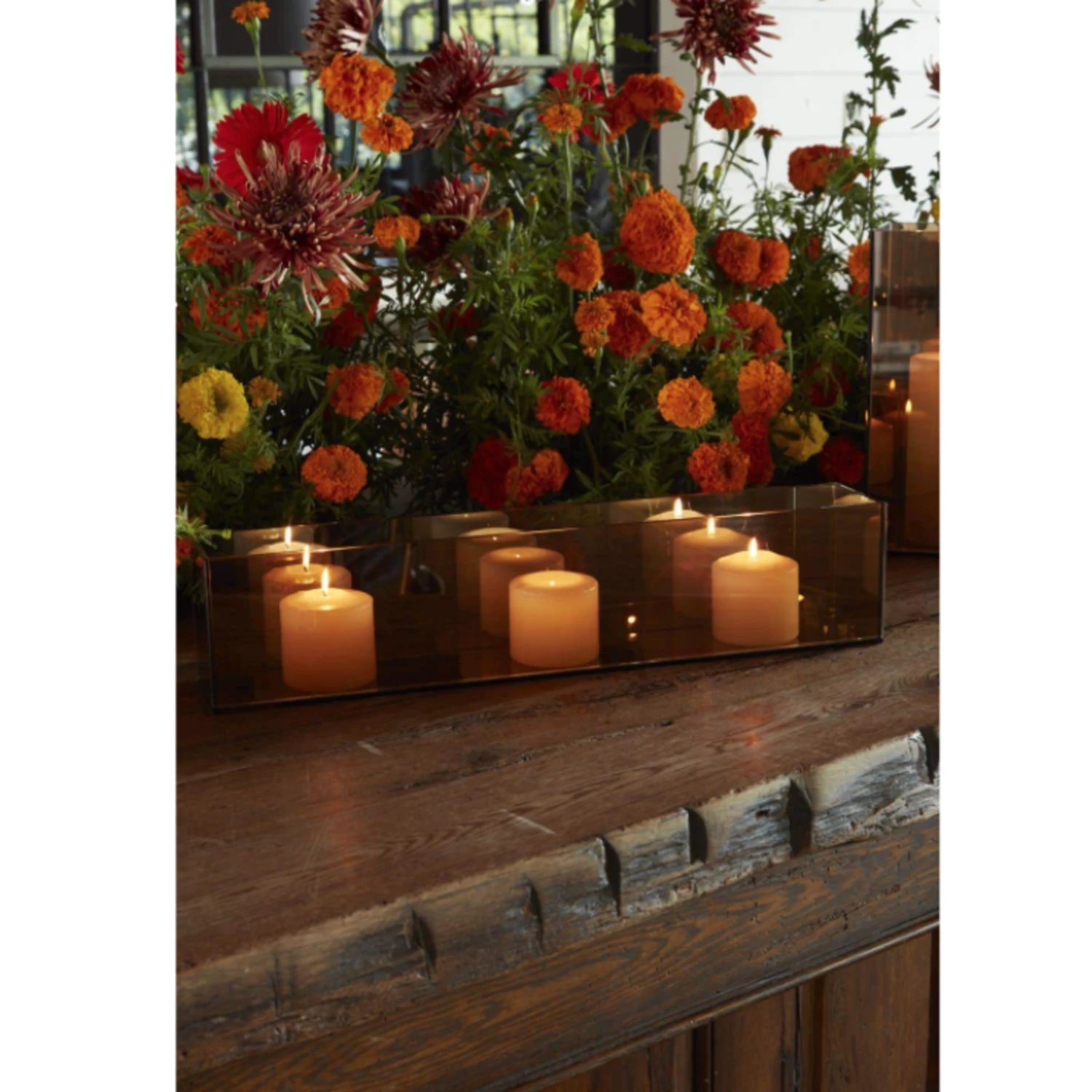 5”H X 4” X 24.5”L AMBER GLASS FOREVER CANDLE REFLECTION MYRIAD CANDLE HOLDER VASE