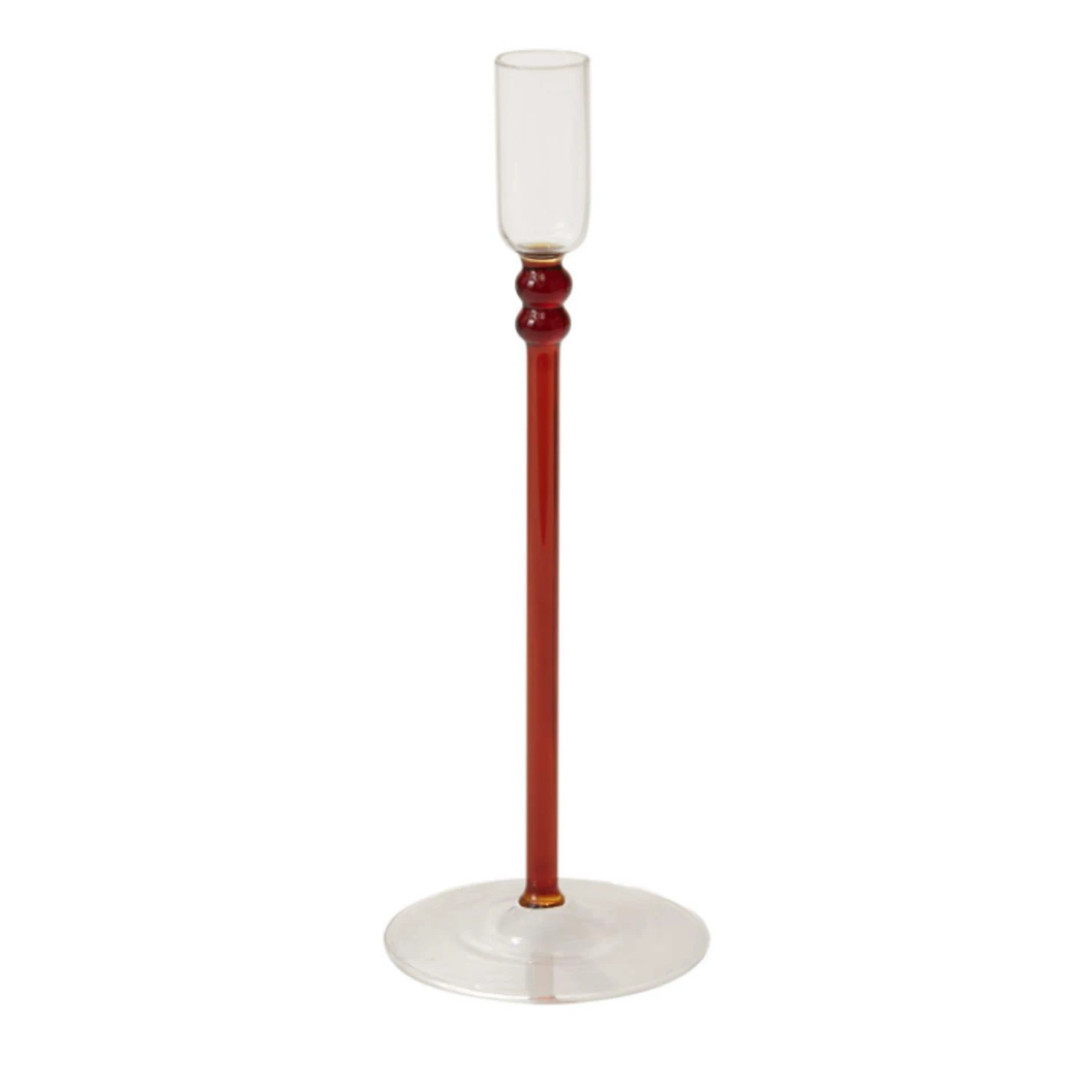 9.75”H X 3.5” AMBER LUCASTA GLASS CANDLEHOLDER